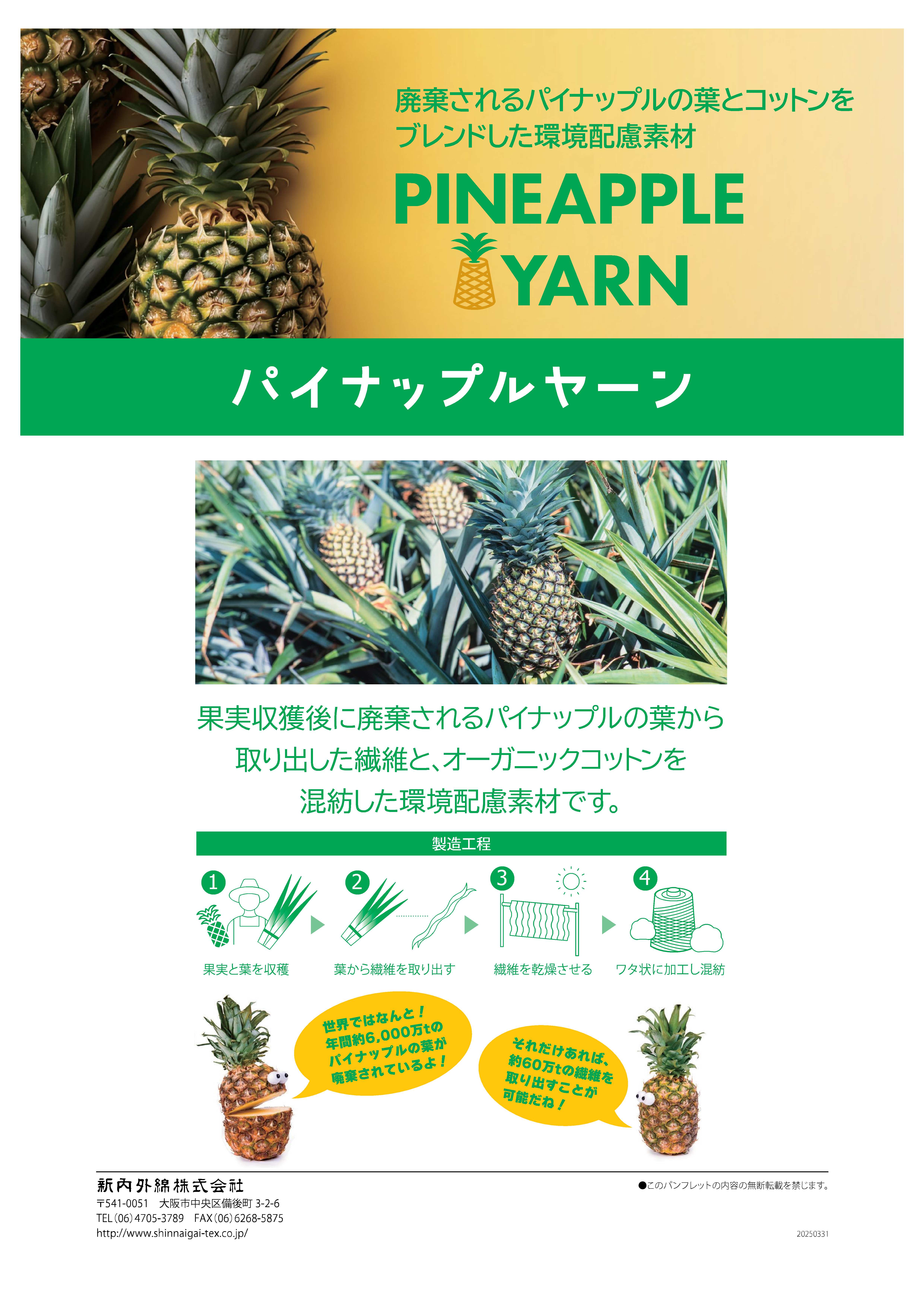 廃棄されるパイナップルの葉とコットンを ブレンドした環境配慮素材